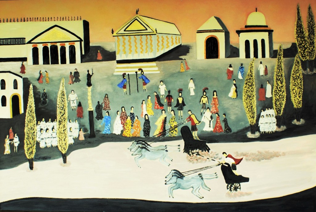 “Una raffinata,originele composizione,dove lo stile naif rende sorprendentemente più solenne la rappresentazione dell’ Impero”
